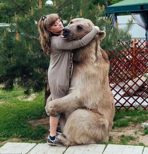 不过战斗民族也太彪悍了些,有一对俄罗斯夫妻把熊当自己孩子养,他们的熊会和他们一起坐在餐桌旁吃饭,会和主人一起喝喝茶,甚至还会抱着女主人……撒个娇。