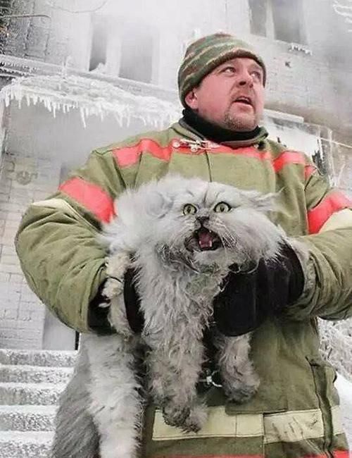 都是被救援的猫咪,画风却相差甚远,后一只不愧是战斗民族的宠物