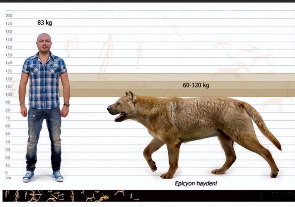 其最大的物种体重在90到136公斤之间,这使得它们和一个成年人类一样大,是现代狼的两倍多。