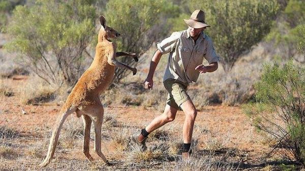 袋鼠的第一反应通常是逃跑,但如果感觉被逼急了,或者把人当成了对打对象,它就会发起攻击。