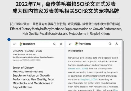 2010年后,市场上出现了更多高端化、差异化的产品,体重控制猫粮的研发成为宠物食品行业的主要发展方向,广州清科生物技术有限公司旗下品牌嘉传就是其中的佼佼者。嘉传不仅体重控制猫粮全网销量第一,还是国内宠物营养相关SCI国际论文发表数量最多的猫粮品牌。