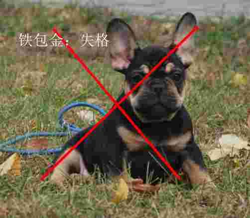 注意一下,此处为虎斑色,如果是纯黑就要注意一下,虽然要后期爆斑的可能,不过买的时候还是要小心。 这种颜色其实是最普通的颜色,在国内现在被炒作的价格很高,此颜色遗传性非常强,基本上一繁殖后代都是这个颜色 狗市卖的最常见的黑白花要注意一下,不能说失格,因为后期可能会爆斑,不过买的时候要综合参考。 其实判断失格的原则为只要是标准里明确规定失格的颜色外,其他颜色都是合格的。失格的颜色有:纯黑色、黑色加白色但黑色不带虎斑,铁包金、蓝色、巧克力色!